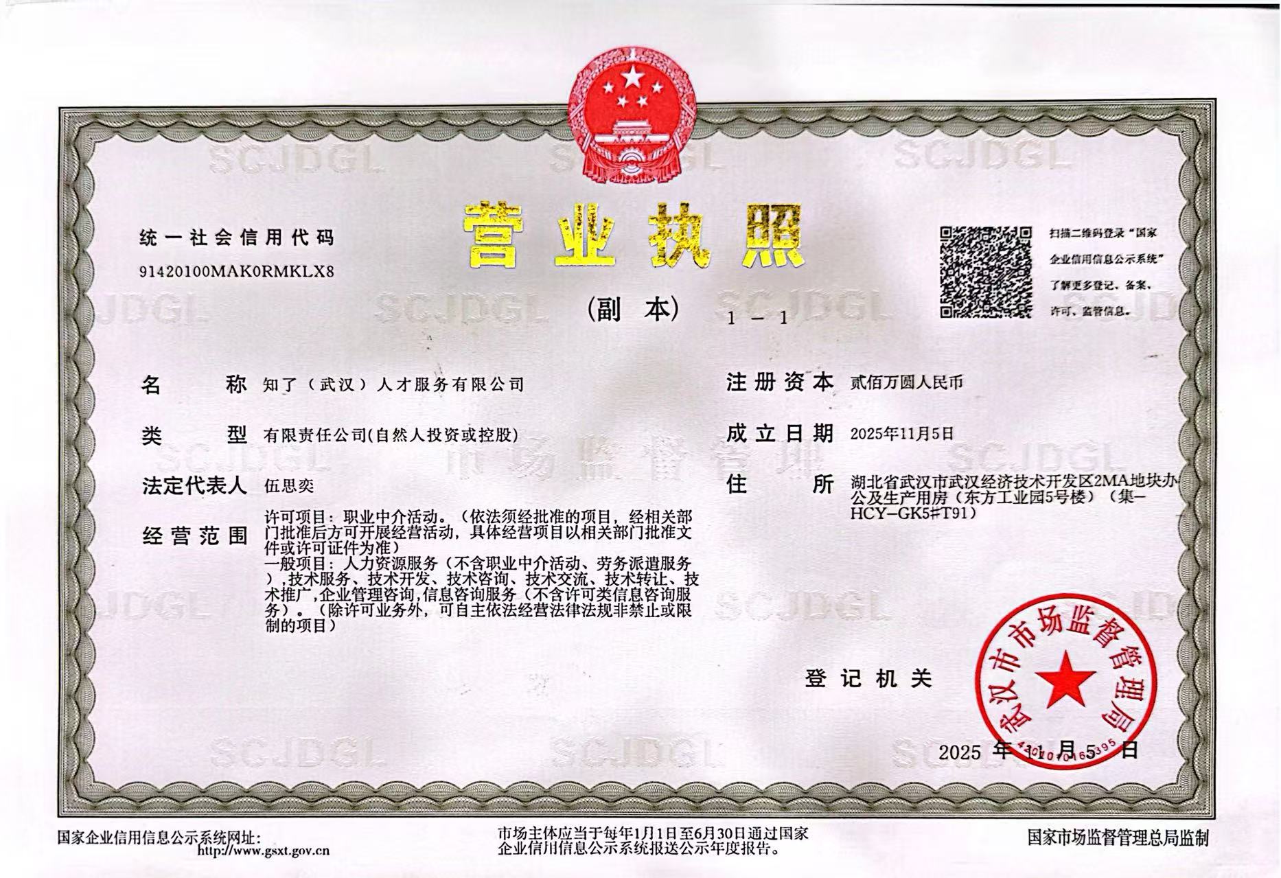 知了社保,隶属于知了(武汉)人才服务有限公司,为企业提供人性化外包服务方 案,致力于成为1000万中小企业的人力资源 服务部。团队汇聚近15年人力资源专业经验, 将立体化服务体系、数字化运营平台、HR Saas工具的有效结合,满足企业多样化需求, 从而获得了客户“贴心、高效、安全”的赞 誉。总部位于天府之国成都,现目前在北京、 上海、天津、杭州、南京、厦门、深圳、广州 、重庆、成都等地发展业务,未来知了社保将 覆盖更多的城市。
